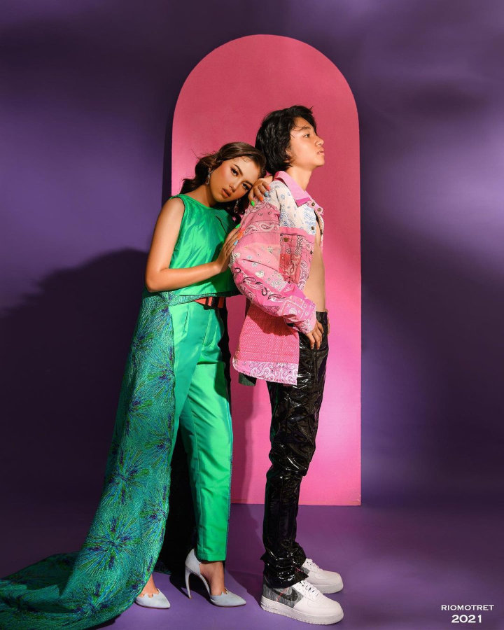 Kiesha menjalani pemotretan dengan tema penuh warna bersama Saskia. Kiesha mengenakan jaket warna merah jambu dipadu dengan celana hitam dan sepatu putih. Di sampingnya, Saskia tampil ceria dalam balutan setelan berwarna hijau terang dan heels abu-abu.