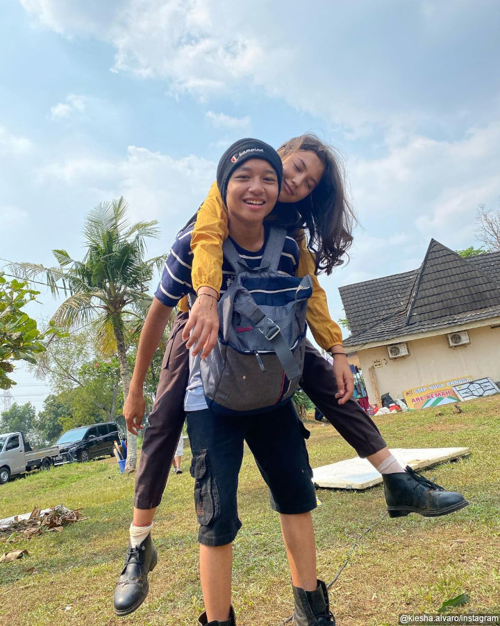 Kali ini Kiesha dan Saskia pamer momen uwu dengan gaya gendong punggung. Keduanya kompak mengenakan busana kasual khas kawula muda. Selain fotonya yang bikin baper, captionnya juga tak kalah uwu. "When the sunshine, we shine together," tulis Kiesha di caption