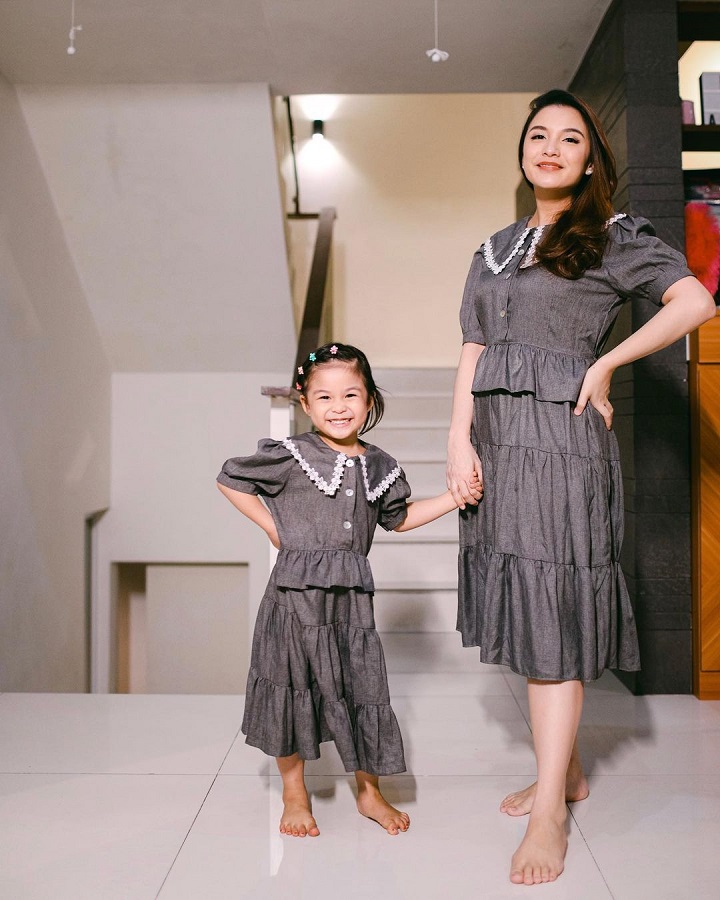 Aktris berusia 29 tahun ini resmi menikah dengan Glenn Alinskie pada tahun 2015. Setahun kemudian, keduanya dikaruniai putri kecil cantik yang diberi nama Nastusha Olivia Alinskie. Chelsea dan Nastusha kerap terlihat kompak termasuk saat mengenakan OOTD seperti di potret ini. Keduanya sama-sama memakai dress panjang berwarna abu-abu tua, produk dari N U Collective.