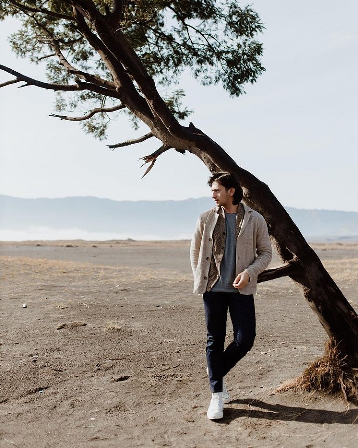 Omar terlihat maskulin terutama dalam potret kali ini. Dia mengenakan busana nuansa earth tone dan menyandarkan lengan di sebuah pohon. Berewok serta rambut panjangnya begitu mencuri perhatian. Omar menampilkan kesan maskulin tak terelakkan.
