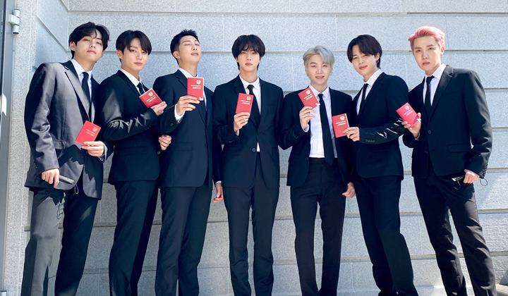 BTS pun menjadi grup K-Pop pertama yang mendapatkan paspor diplomatik berartikan akan menghadiri acara mewakili Korea Selatan. BTS tampak hadir di Blue House dengan setelan resmi untuk menerima paspor diplomatik mereka tersebut.