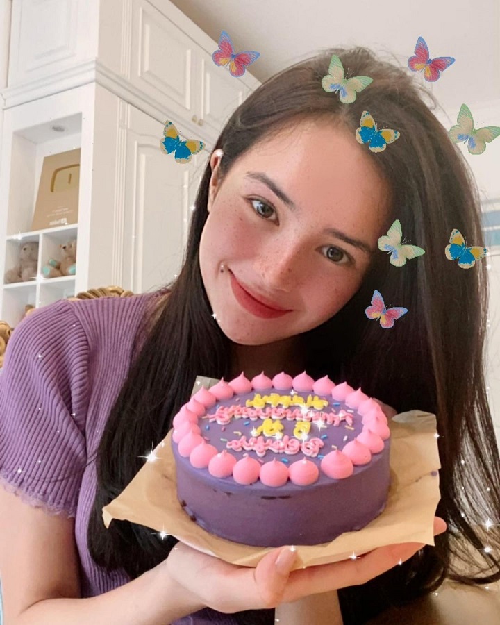 Bertepatan dengan anniversary ke-5 tahun Bebyes (sebutan penggemar Beby Tsabina), aktris berusia 18 tahun ini tak lupa untuk merayakannya. Beby Tsabina rampak mengenakan outfit ungu menyesuaikan dengan cake yang juga berwarna sama. Beby Tsabina semakin menunjukkan pesona cantiknya saat sedang tersenyum bahagia seperti ini.