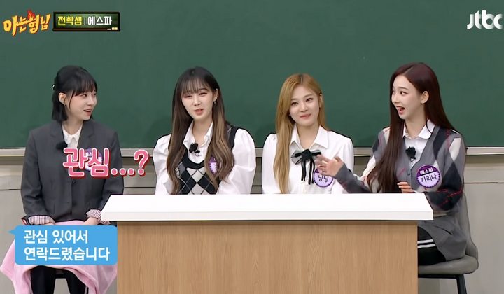 aespa juga berbicara tentang kedekatan mereka sebagai sebuah kelompok, sering berbagi pakaian di antara mereka. "Jika itu terjadi padaku, aku akan meninggalkan grup," canda Kim Heechul danSeo Jang Hoon bertanya apakah mereka juga akan berbagi makanan khusus yang ditinggalkan ibu mereka sendiri di asrama, dan Karina berkata, "Jika itu adalah sesuatu yang bisa dimakan siapa pun, maka kami memberi tahu semua orang sebelumnya."