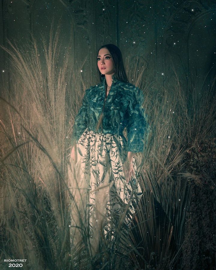 Ririn kembali menjalani pemotretan super memukau. Bertema 'world beyond imagination', Ririn tampil dengan suasana alam yang pekat. Ia tampak dikelilingi oleh rerimbunan hijau tanaman selaras dengan busana yang ia kenakan.