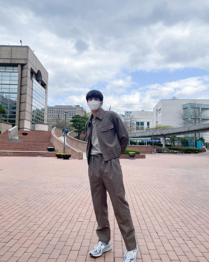 Anti monoton, Kim Seon Ho memadukan setelan warna army dengan kaos putih serta sneakers senada. Perpaduan dua warna ini membuat penampilan aktor berusia 35 tahun itu tetap kece dan fancy .