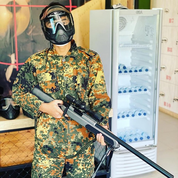 Dimas tampaknya menyukai olahraga ekstrem seperti menembak. Seperti pada momen kali ini, ia tampak kece dengan senjata yang berada di tangannya. Netizen pun ramai memberi pujian.