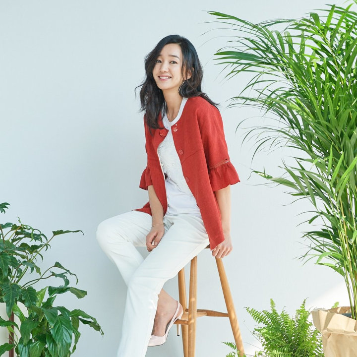 Artis era milenial ini gayanya tak kalah stylish dengan gen Z. Seperti di momen kali ini, bintang drama "Athena: Goddess of War" ini tampil chic dalam balutan kaos, straight pants yang semuanya putih dikombinasikan dengan blazer merah. Soo Ae dengan gaya elegan duduk di atas sebuah kursi tinggi.