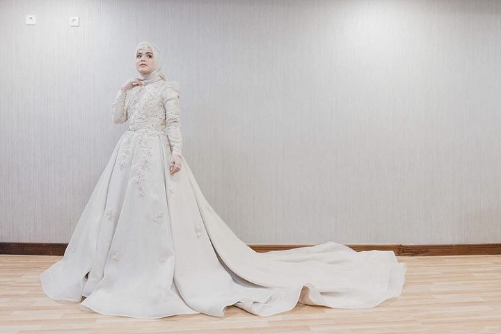 Vebby tampil anggun dan glamor dalam balutan gaun karya Rasya Syakira. Bak princess Disney, Vebby berpose berdiri dengan meletakkan tangan di depan leher. Nah dari deretan potret di atas, yang mana favoritmu?
