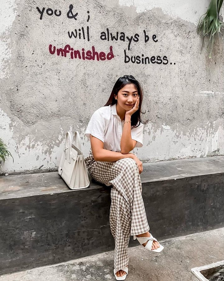 Pemain FTV "Kutunggu Kau di Pasar Minggu" ini memang senang tampil dengan looks semi formal. Nona tampak memadukan kemeja putih dengan celana kain warna cokelat terang. Nona juga mengenakan tas jinjing yang senada dengan kemejanya.