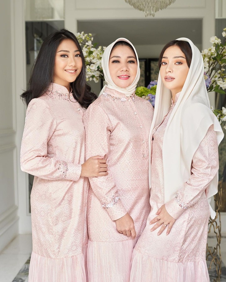 Nona dan keluarga tampil kompak saat merayakan Hari Raya idul Fitri. Nona, mama, dan sang kakak, Nikita Willy tampak serasi mengenakan gamis merah muda serta merias wajah mereka dengan bantuan Vidi Daniel.
