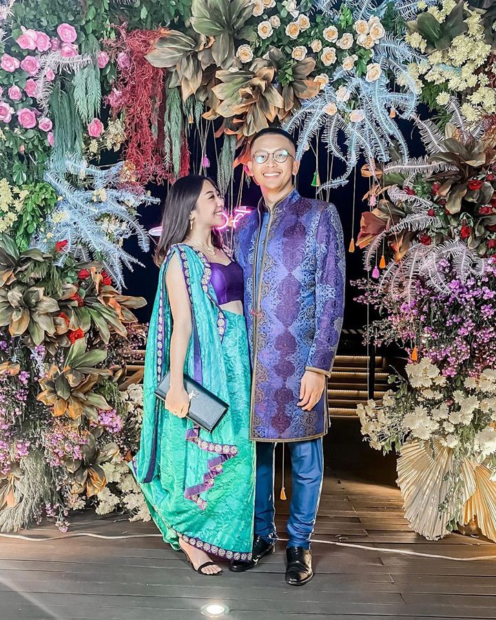 Influencer dengan followers sebanyak 151 ribu ini kerap kali membagikan kemesraannya dengan sang suami saat masih berpacaran. Nona terlihat kompak memakai gaun ungu - tosca bertema bollywood saat menghadiri undangan pernikahan salah satu teman dekat mereka.