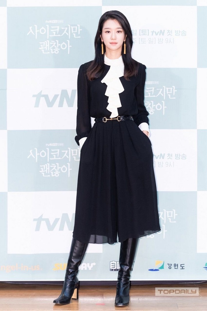 Ye Ji dikenal memiliki style unik dan vintage yang kerap mencuri perhatian. Mix and match style yang ia kenakan menjadi inspirasi untuk para penggemar. Seperti pada potret kali ini, Seo Ye Ji tampak menakjubkan dalam balutan dress monokrom dengan ruffle putih unik serta boot heels.