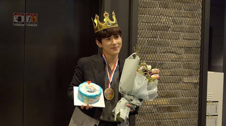 Kombinasi sempurna, Im Siwan juga memiliki senyum imut memikat hati. Seperti dalam potret di atas, ia akan menampilkan wajah menggemaskan saat senang. Im Siwan menenteng sebuah kue dan buket bunga smentara ada mahkota menghiasi kepalanya.