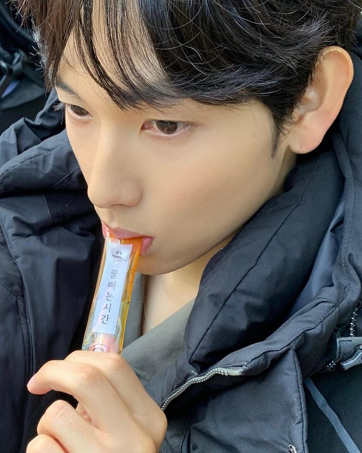 Im Siwan tak pernah sungkan bertingkah imut. Jika ia bahagia ia tertawa lebar dan ekspresif. Parasnya begitu menggemaskan tak cocok dengan usia asli. Dalam momen kali ini, Im Siwan berpose lucu dengan menangkupkan dada dan tertawa lebar.