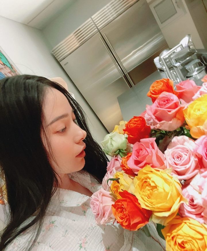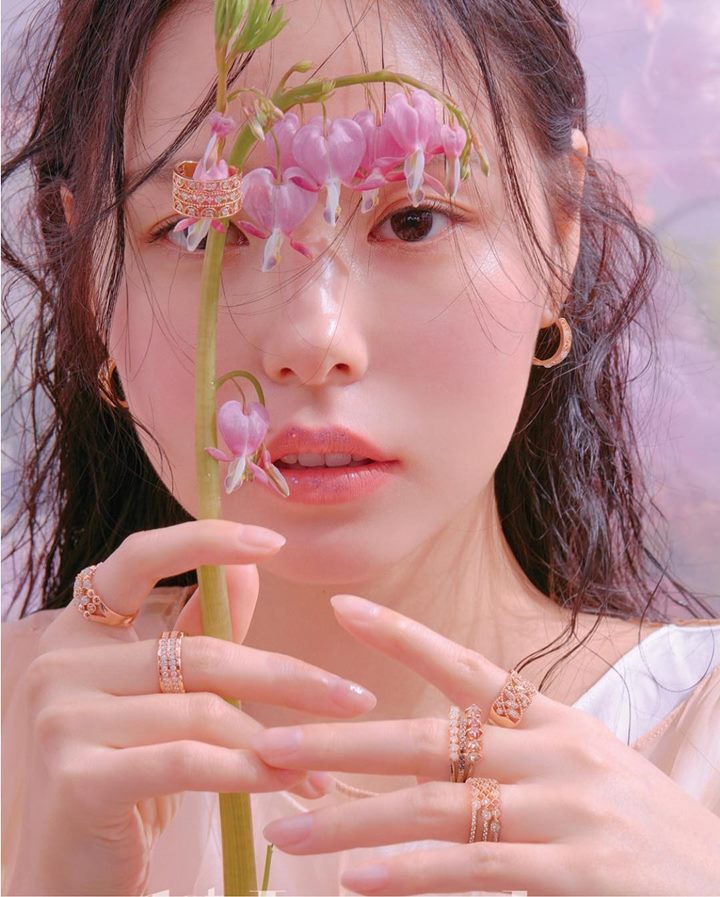 Min Hyo Rin menampilkan side profile sempurna yang membuktikan bahwa ia menarik dilihat dari sisi manapun. Pada potret kali ini ia seolah mengajak penggemar untuk ikutan mengagumi kecantikannya yang paripurna. Ia lantas berpose candid dengan menatap bunga penuh makna.