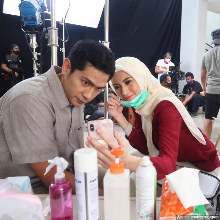 Saling dukung dan kompak. Donita dan Adi kerap mengisi acara bersama dan syuting bersama. Dalam potret di belakang layar akali ini, Donita dan Adi tampak mesra dan bikin baper. Kebahagiaan karena memiliki satu sama lain tampak terlihat pada mereka.