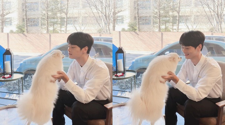 Tak hanya tampan, N juga sosok penyayang. Dalam momen kali ini pelantun "Error" itu mengunggah potret hangatnya ketika bersama seekor anjing putih. N tampak tersenyum manis dan menatap sayang sang anjing.
