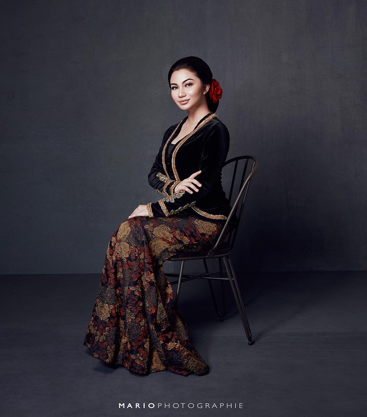 Ariel tampil bersahaja bak ningrat dalam balutan kebaya Jawa. Bekerja sama dengan Mario Photography, Ariel melakukan pemotretan dengan berpose anggun duduk di kursi sembari meletakkan tangan di atas lutut. Kembang mawar merah yang bertengger di rambutnya, semakin membuat Ariel menawan.