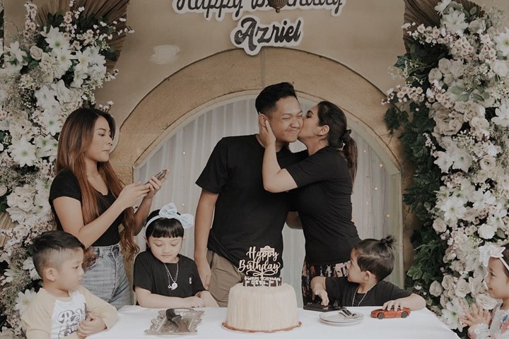 Jiel mendapatkan kecupan hangat dari Ashanty saat merayakan ulang tahun ke-20. Selebgram ganteng ini. Putra Krisdayanti itu juga memperingati hari lahirnya dengan mengadakan pesta sederhana yang dihadiri kerabat dekat. Terlihat warna hitam adalah dresscode pada perayaan ulang tahun Jiel.