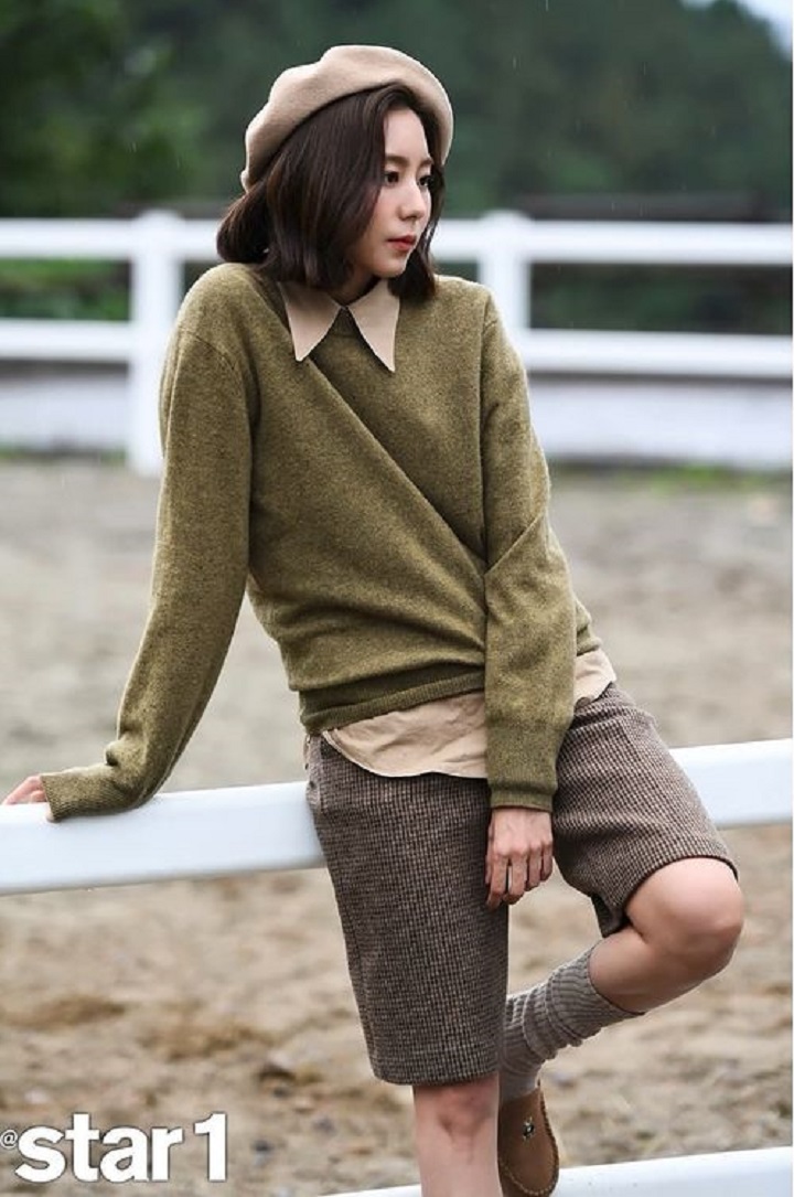 Tampil ala unnie-unnie Korea, UEE tampak cantik dan anggun. Ia tampil dengan setelan kerja saat bermain di drama "Ghost Doctor". UEE mengenakan turtleneck krem dipadu dengan blazer cokelat tua dan rok span senada. Ia juga mengenakan heels yang membuat penampilannya super manis.