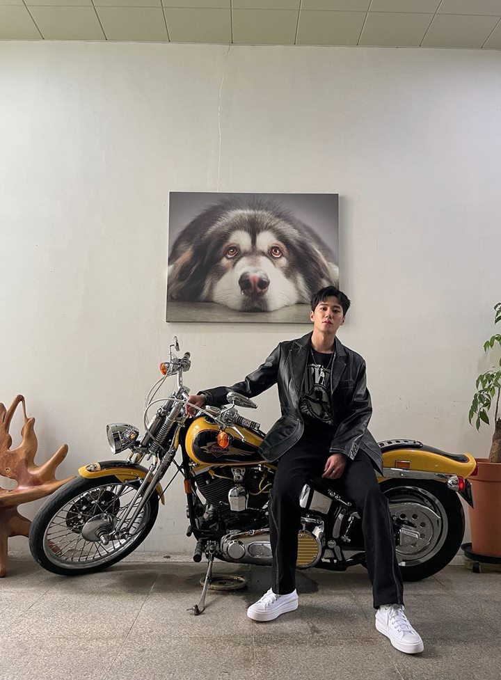 Berada di dunia hiburan membuat Jun telah terbiasa dengan adanya kamera. Tak heran, jika pria asal Korea Selatan ini selalu tampil fotogenik di berbagai situasi. Kali ini, ia sedang berpose di depan sebuah motor dengan gaya busana yang swag banget. Penampilan Lee Jun Young bak anak bike yang siap sunmori!