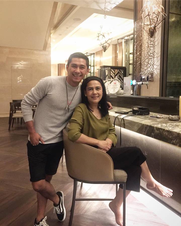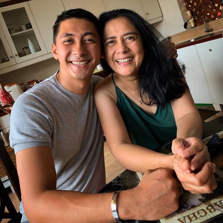 Kenang termasuk putra yang tidak malu melakukan skinship terhadap sang mama. Pemain sinetron "Jakarta Love Story" tersebut tampak memeluk tubuh Lydia dari belakang sebagai bentuk perhatian dan kasih sayangnya.