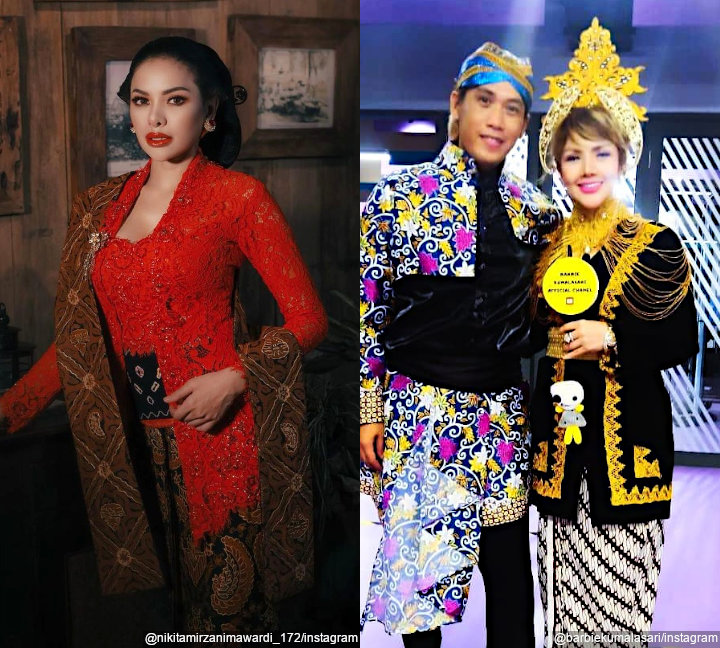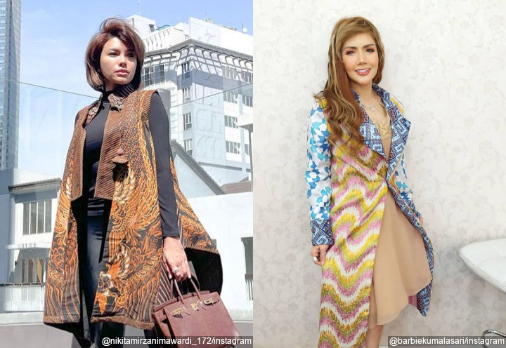 Niki dan Barbie terlihat stand out saat mengenakan busana batik. Niki memadukan busana serba hitamnya dengan balero batik warna cokelat. Sedangkan Barbie mengenakan long blazer batik berwarna cerah sebagai outer gaunnya.