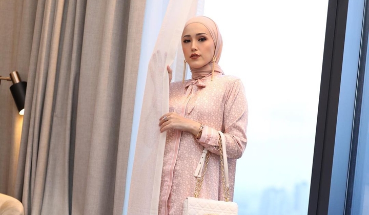 Sebagai istri dari pejabat, Adelia kerap tampil kompak dan serasi dengan sang suami, Pasha. Kali ini, Adelia memilih mengenakan baju muslim bernuansa abu-abu dan biru yang sederhana namun senada dengan baju kokoh yang dipakai oleh Pasha.