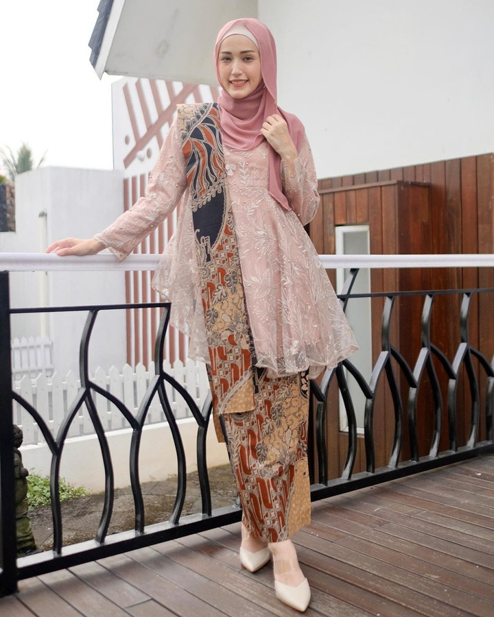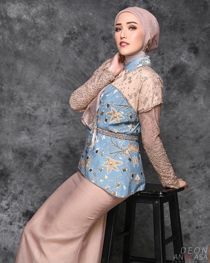 Selebgram yang lahir pada tanggal 22 Maret 1989 tampil anggun dengan kebaya berwarna baby pink. Demi menyempurnakan penampilannya, Adelia memilih untuk memakai jarik batik yang senada dengan selendangnya di pundak kirinya.