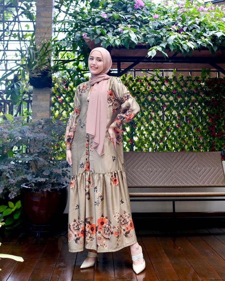 Adelia kembali memberikan inspirasi OOTD untuk acara semi formal lainnya. Ibu cantik ini terlihat stand out dengan mengenakan gamis bermotif bunga-bunga yang sederhana namun elegan bernuansa warna pastel. Adelia menyempurnakan penampilannya dengan memakai High heels putih.