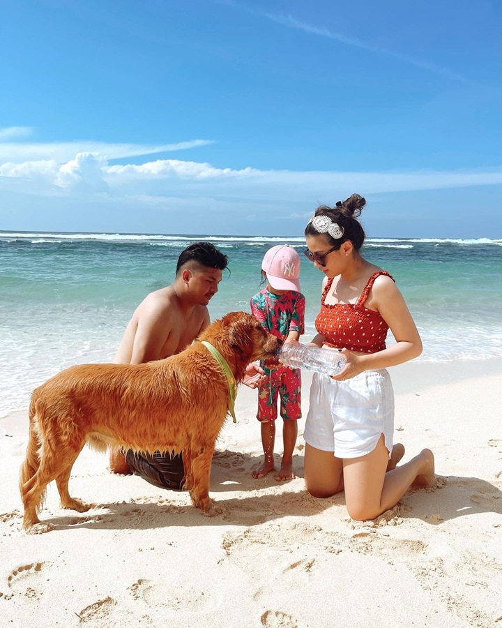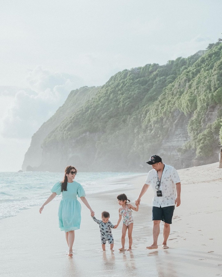 Keluarga kecil ini tak lupa untuk mengunjungi pantai saat berlibur di Bali. Chelsea dan Glenn tampak bergandengan tangan menyusuri pesisir pantai. Pasangan ini juga mengajak kedua anak mereka, Nastusha dan Dante untuk menikmati keindahan pantai tersebut.