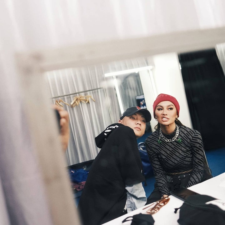 Adam dan Agnes lagi-lagi menunjukkan momen harmonis mereka dalam sebuah potret candid. Pasangan sensasional tersebut terlihat baru saja selesai didandani oleh penata rias mereka dan dipotret melalui pantulan kaca.