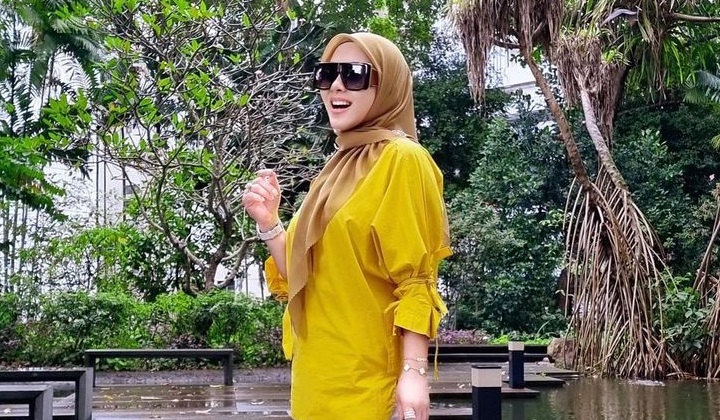 Tak lupa ia juga menenteng tas serta kenakan kacamata gelap sebagai penunjang penampilannya. Penutup kepala alias kerudung juga selalu menempel di kepalanya, mengingat kini ia sudah memutuskan untuk berhijrah.
