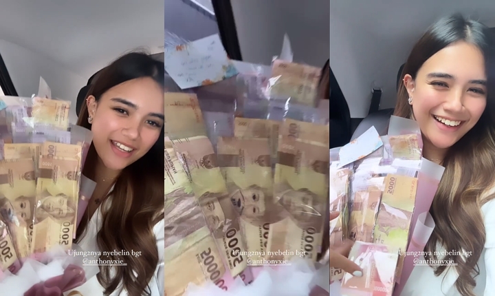 Audi Marissa mendapat hadiah yang berkesan dari Anthony Xie di momen Valentine. Ia mendapat buket bunga uang Rp5000-Rp10.0000 namun saat d balik di bagan terselip nominal Rp100.000. Audi pun speechless dengan ide unik sang suami kala memberikan kado sebuah buket uang kepada dirinya. Kreatif banget!