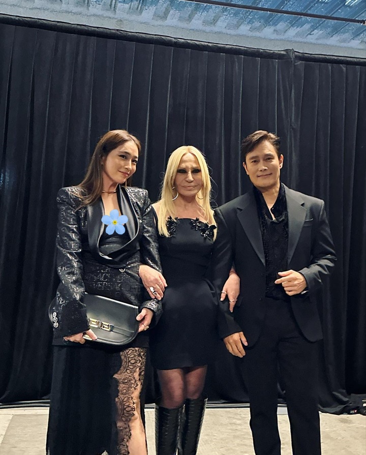 Di momen menghadiri acara fashion show, Lee Byung Hun dan Lee Min Jung tentunya bertemu dengan Donatella Versace. Tampak sang perancang busana berada di tengah diapit oleh pasutri tersebut. Bersanding bersama, ketiganya memancarkan aura mahal yang memukau.