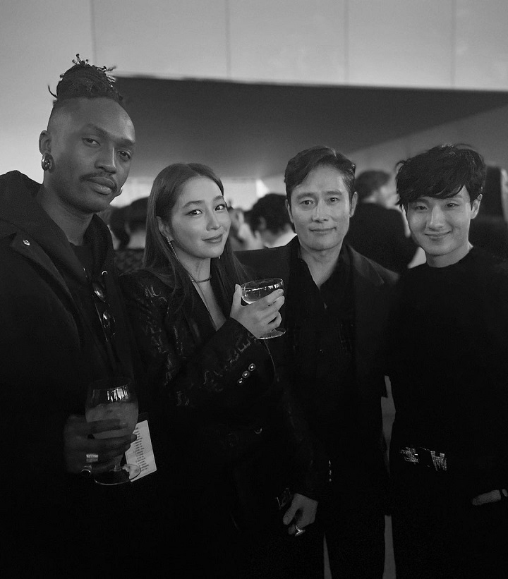 Friendly banget, Lee Byung Hun dan Lee Min Jung berbaur dengan deretan tamu undangan yang hadir di fashion show. Joshua Ha Young Kim, desainer Versace mengunggah momen kebersamaan dengan pasar tersebut saat berada di Pacific Design Center. Selain mereka bertiga, ada pula Ibrahima Gueye yang juga merupakan seorang desainer seperti Joshua.