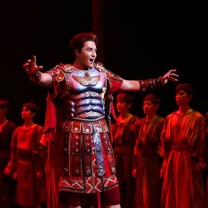 Woo Hyuk terlihat gagah meski mengeluarkan wajah sendu kala mendalami perannya sebagai Messala di "Ben-Hur". Ia mengenakan kostum dengan desain yang unik pada bagian lengan dan dadanya. Aktor "Holy Land" ini juga mengungkapkan perasaan bahwa ia sangat menyukai menyanyi dan berakting.