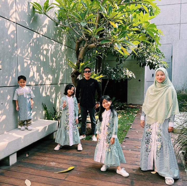 Desta membagikan foto keluarganya di Hari Raya Idul Fitri 2023. Lucunya, anggota klub motor The Prediksi ini outfitnya beda sendiri dari anak serta istrinya. Ketika Caca, Megumi, Miskha, dan Miguel memakai warna sage, Desta di sisi lain mengenakan kemeja hitam. Mereka berlima tampak manis meski beda kostum.