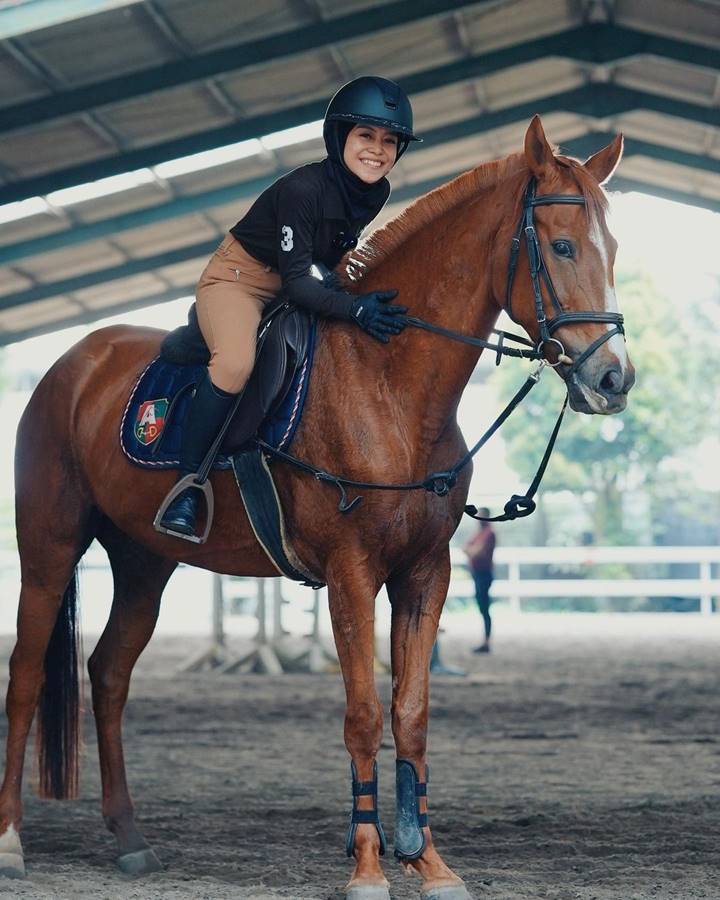 Belakangan ini Lesti juga menunjukkan minat terhadap olahraga berkuda. Hal ini terlihat dari ragam postingan pelantun "Sekali Seumur Hidup" yang aktif membagikan momen berlatih naik kuda di arena pacuan. Pada momen di atas, Lesti terlihat ceria menaiki kuda berbalut outfit celana dan jaket cokelat serta hijab. Ia juga memakai helm untuk safety.