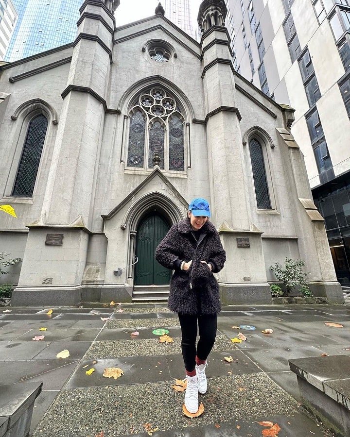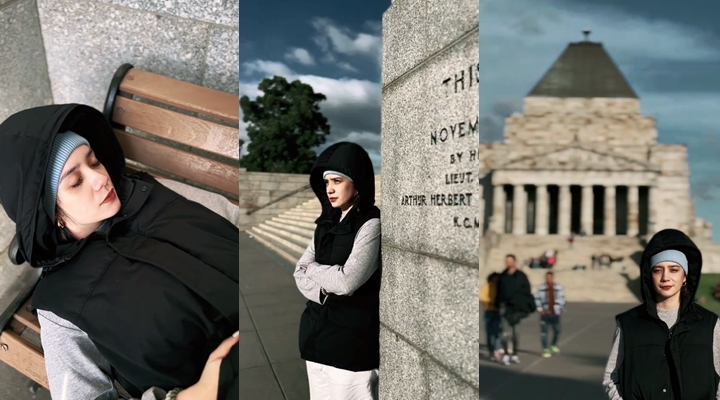 Masih dengan outfit yang sama, Anne menikmati waktu liburannya di Australia. Ia tampak berkeliling di lokasi tertentu seraya bergaya memasukkan tangan ke dalam saku jaket berbulunya. Anne memilih mengikat rambut cantiknya dan menutupinya dengan topi warna biru.