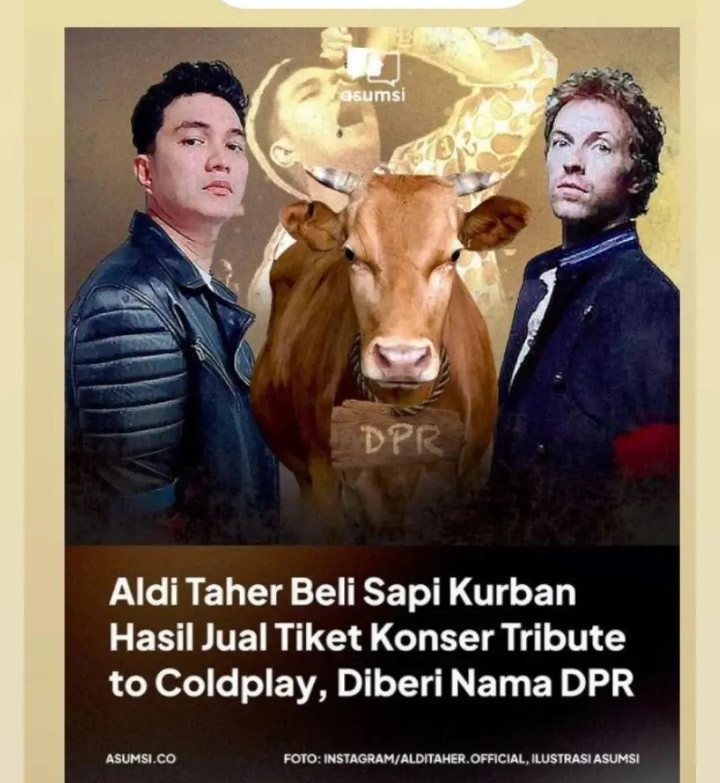 Aldi Taher mengaku kurban sapi yang dibelinya dari hasil penjualan tiket konser "Tribute to Coldplay". Ia memberikan nama unik untuk hewan tersebut DPR atau Dia Pilihan Rakyat. Aldi menamainya dengan alasan tertentu DPR atau Dia Pilihan Rakyat yang mana mewakili dirinya yang seorang rakyat.