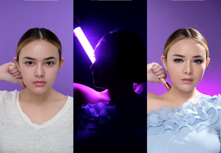 Manda pun turut mengikuti trend transisi menggunakan lighting yang pernah viral pada zamannya. Di awal, aktris kelahiran 6 Desember 1999 ini tampak bare face namun saat lampu mati ia muncul dengan transisi penampilan yang baru. Lagi-lagi, konten Manda mendapat banyak pujian bahkan netter notice dengan jumlah views yang semua mencapai miliaran.