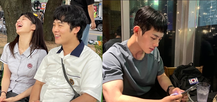 Bermain sebagai Bong Seok, penonton diperlihatkan dengan penampilan Jung Ha yang gembul dan kiyowo. Namun di kehidupan nyata, ia gak ragu lho mengubah rambutnya dengan warna yang mencolok. Pada momen di atas, ia bak menjelma menjadi Ken dari film "Barbie" dengan mengecat rambutnya menjadi pirang.